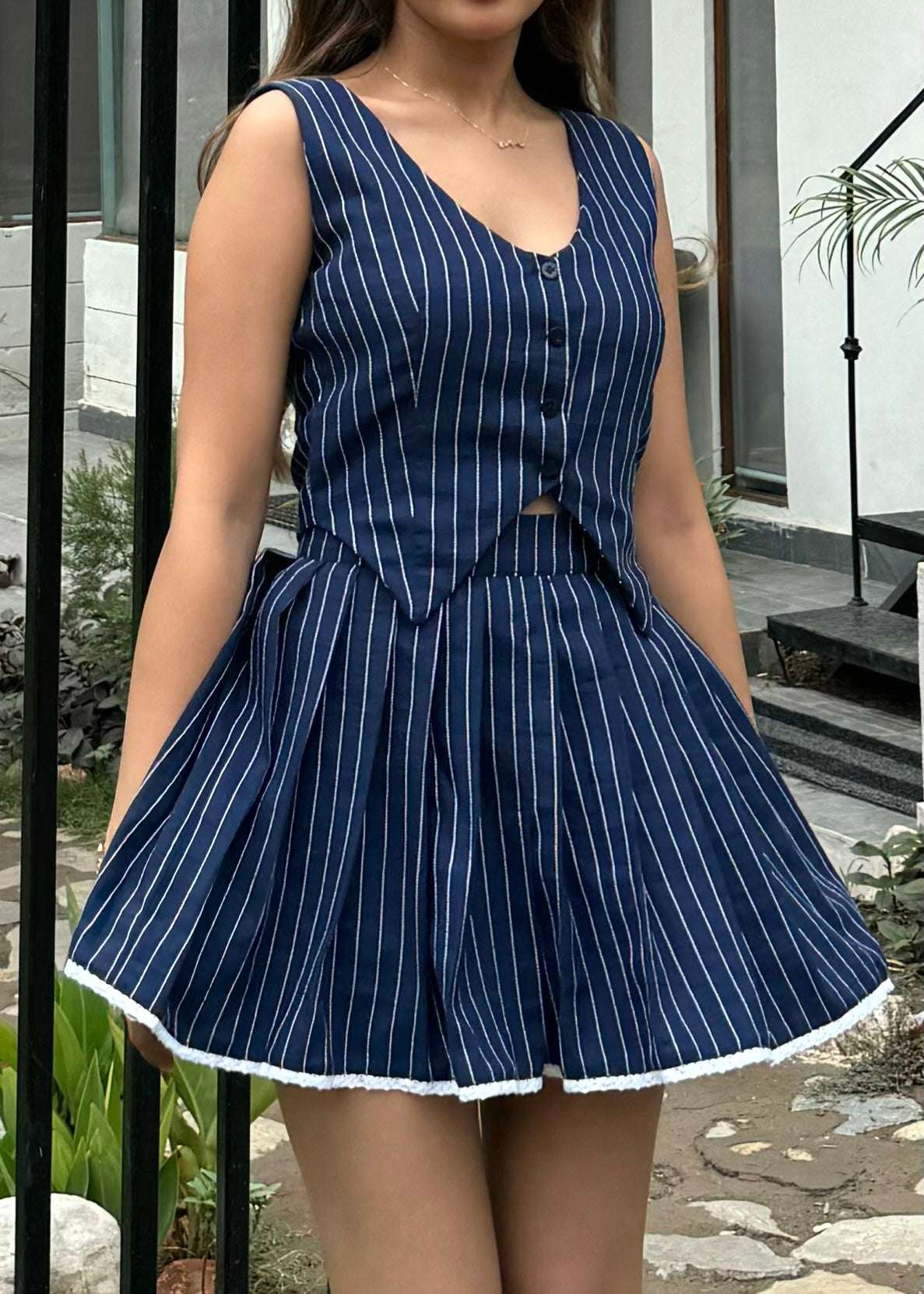Pinstripe Waistcoat & Skirt Set